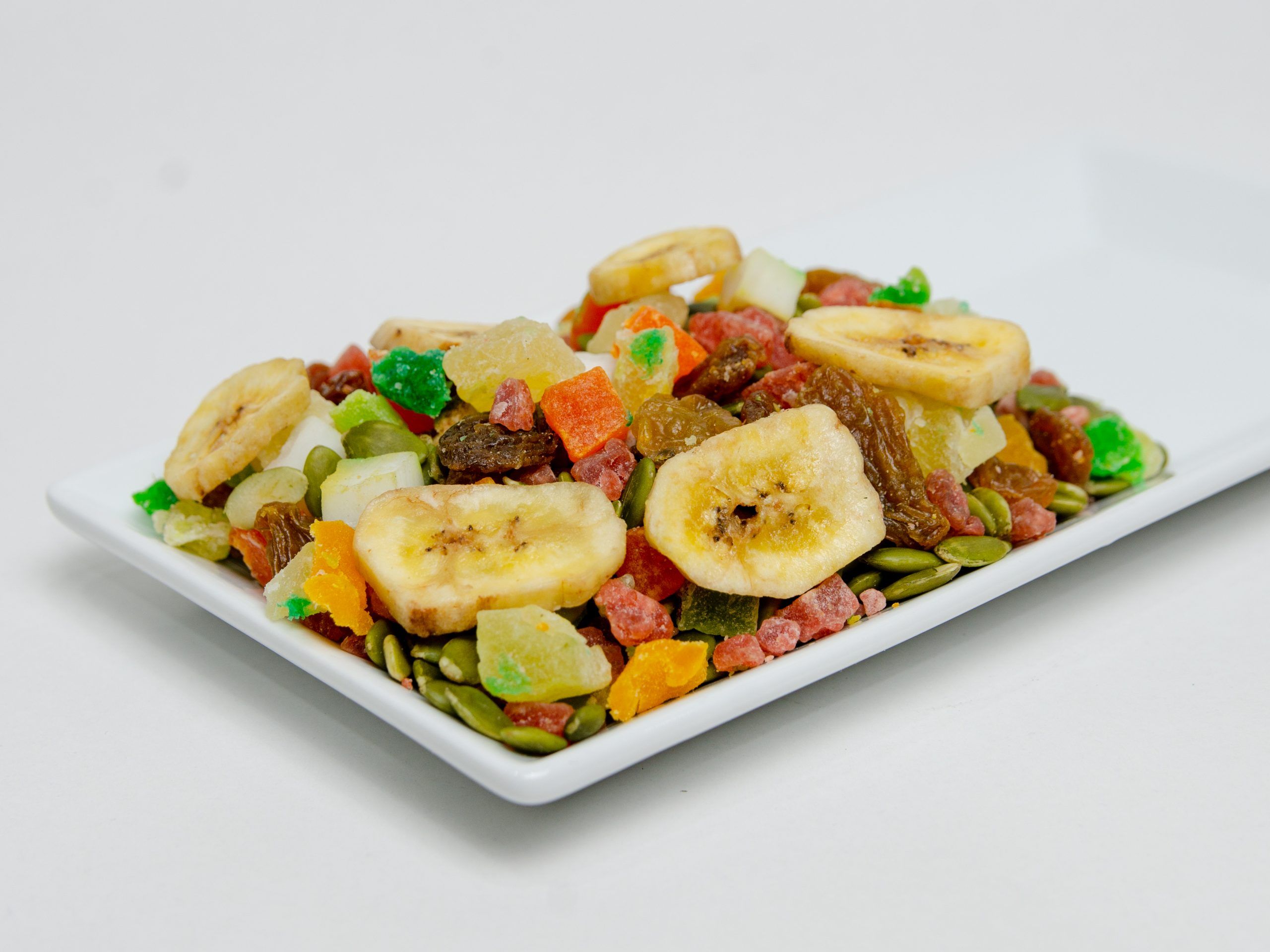 Formato: kilo y medio Ingredientes: Zapallo, Banana Chip, Mix Frutas, Pasas Rosadas, Pasas Flame y Kiwi picado